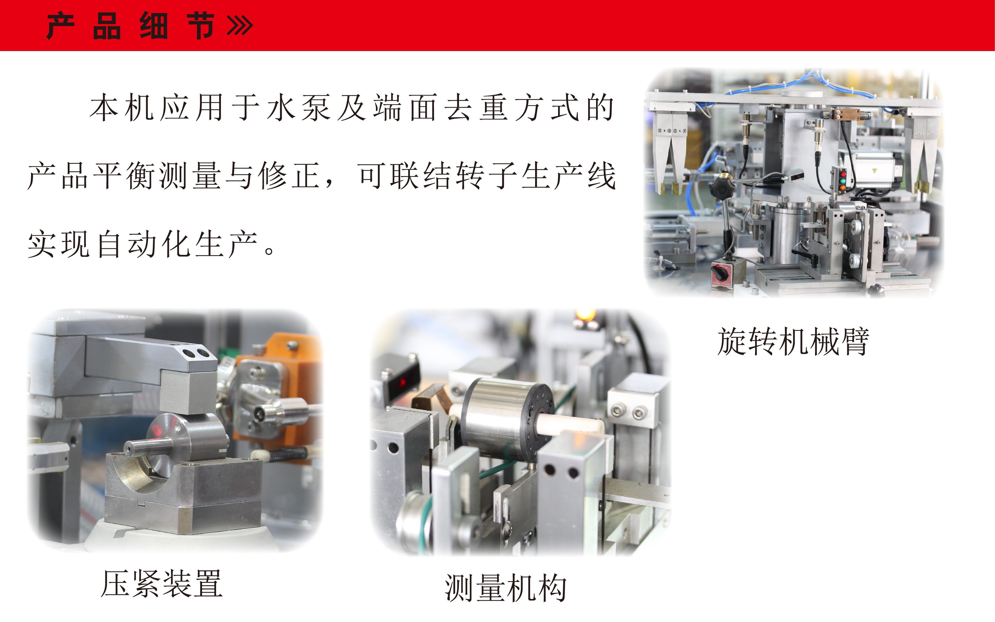 主要應(yīng)用于轉(zhuǎn)子及端面去重的轉(zhuǎn)子平衡測(cè)量和修正,可聯(lián)接轉(zhuǎn)子生產(chǎn)線實(shí)現(xiàn)自動(dòng)化生產(chǎn)